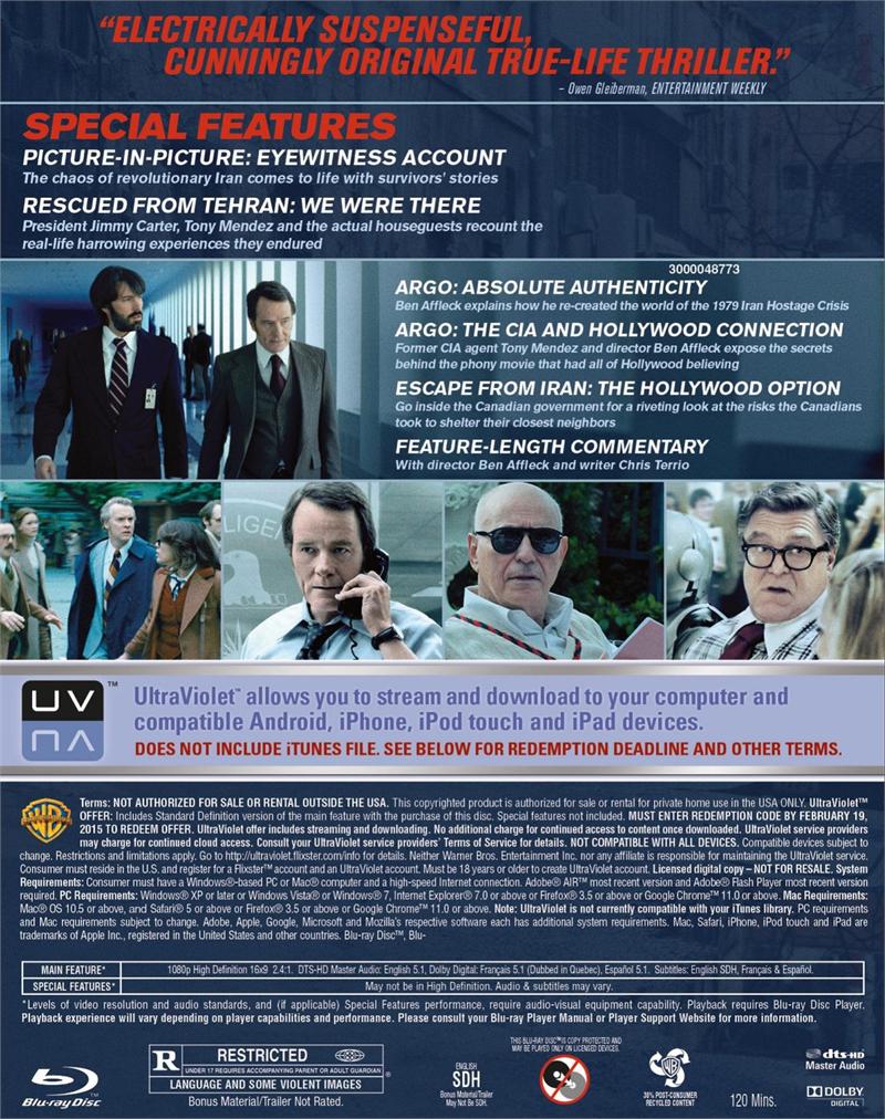Argo - Starring Ben Affleck, Bryan Cranston, Alan Arkin and John Goodman (Blu-ray/DVD Combo+UltraViolet Digital Copy - 02/19/2013)
